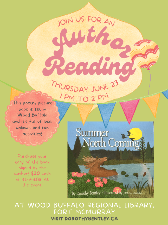 Summer Northing Coming, Winter North Coming, picture book reading during Storytime. Wood Buffalo Regional Library. Thursday June 23, 1 PM, 2022.